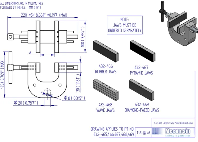 An extensive collection of interchangeable jaws provide excellent gripping characteristics to ensure that a variety of materials and components can be securely held.