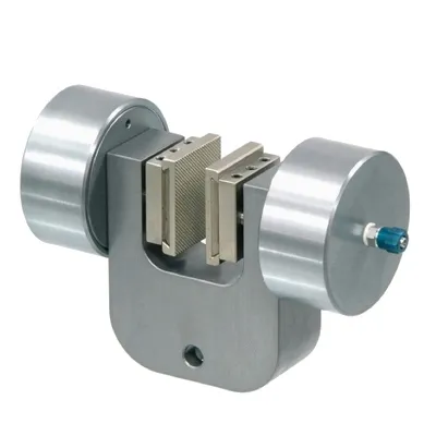 A pair of pneumatically-operated, Double-action Medium Vice Grips with an opening of 0-20mm depending on the jaw types selected. Each grip is fitted with 2 x 50 mm diameter pneumatic pistons, which allow the test specimen to be easily held around the central axis and apply up to 1.2 kN constant clamping force.