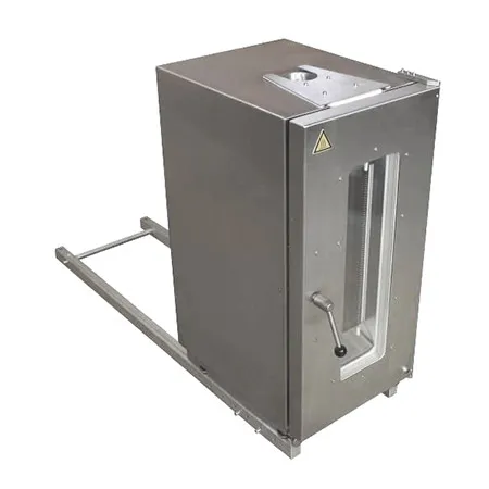 The chamber is mounted on a universal fore/aft rail to allow the cabinet to be moved rearwards, away from the test space, to enable the machine to be used for normal ambient condition testing.