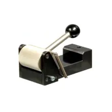 The lever allows for quick insertion and release of specimen to reduce testing time and facilitate ease-of-use for the operator.