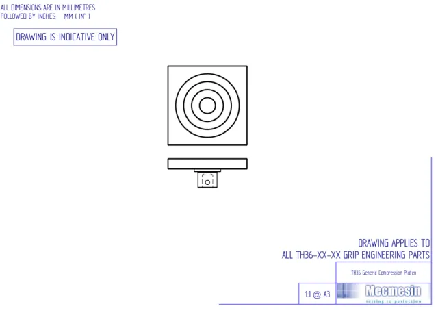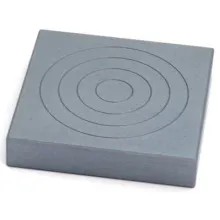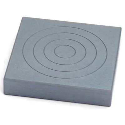Quadratische Druckplatte aus Aluminium mit konzentrischen Kreisen, die den Anwender hilft, Proben zentral zu platzieren. Für weiche Proben, Kartons, Kunststoffe etc.