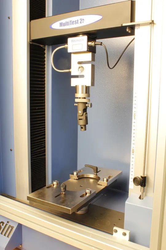 Mecmesin은 견고한 칼라 고정 플레이트와 유연한 링크의 로드셀에 부착 된 밸브 홀더를 설계했습니다. 이를 통해 어느 정도의 자체 정렬이 가능하여 두 부품 모두 손상이나 왜곡없이 고정됩니다. 그런 다음 칼라와 밸브를 트윈 컬럼 테스트 스탠드에서 축 방향으로 균일하게 당겨서 최대 장력을 테스터에 의해 기록합니다.