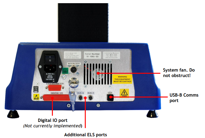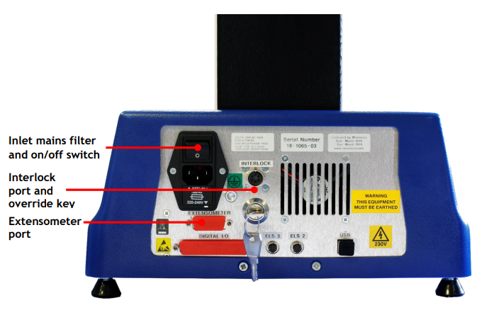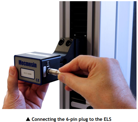 To connect your ELS to your OmniTest stand simply plug the 6-pin connector located on the machines crosshead into the ELS fitted.