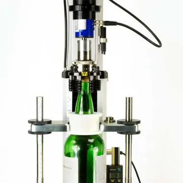 通过简单的控制,瓶子就会被提升到预先设定的位置,软木塞就可以插入上部的夹持器中。然后在测试前剪断铁丝笼(瓶口)使其松开。然后测试仪以固定的速度将瓶子放下,同时软木塞的释放扭矩会被显示装置捕捉到。